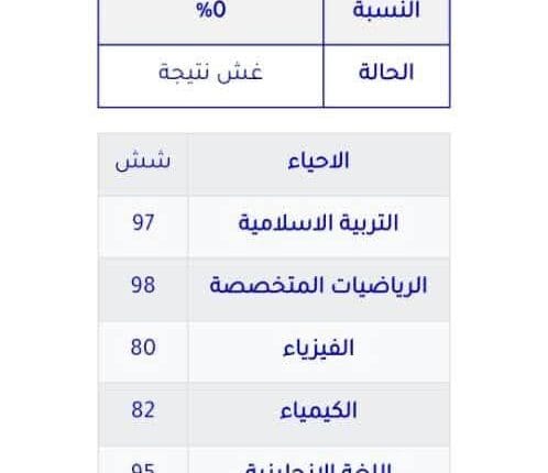 لكن المفاجأة الصادمة أن النتيجة أُعلنت بـ”غش في مادة الأحياء”، لتُحرم الطالبة من النسبة العامة رغم تفوقها الواضح في باقي المواد الأساسية.