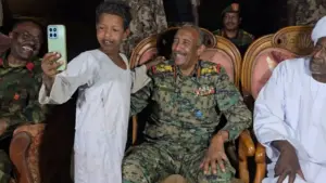 أثارت صورة عفوية لطفل سوداني يلتقط صورة “سيلفي” مع رئيس مجلس السيادة والقائد العام للقوات المسلحة الفريق أول ركن عبد الفتاح البرهان تفاعلاً واسعاً على منصات التواصل الاجتماعي.