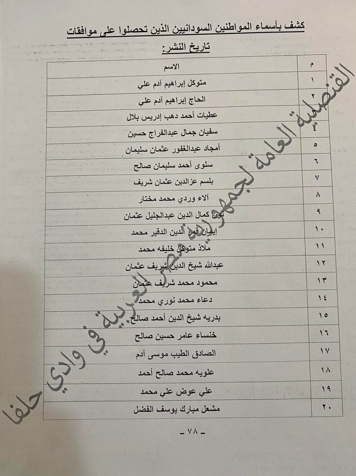أعلنت القنصلية العامة لجمهورية مصر العربية في وادي حلفا صدور موافقات منح التأشيرات لعدد من المواطنين السودانيين، ودعت أصحاب الأسماء الواردة في الكشف المرفق إلى تسليم جوازات سفرهم شخصياً يوم الأربعاء 1 أبريل 2026 بمقر القنصلية.